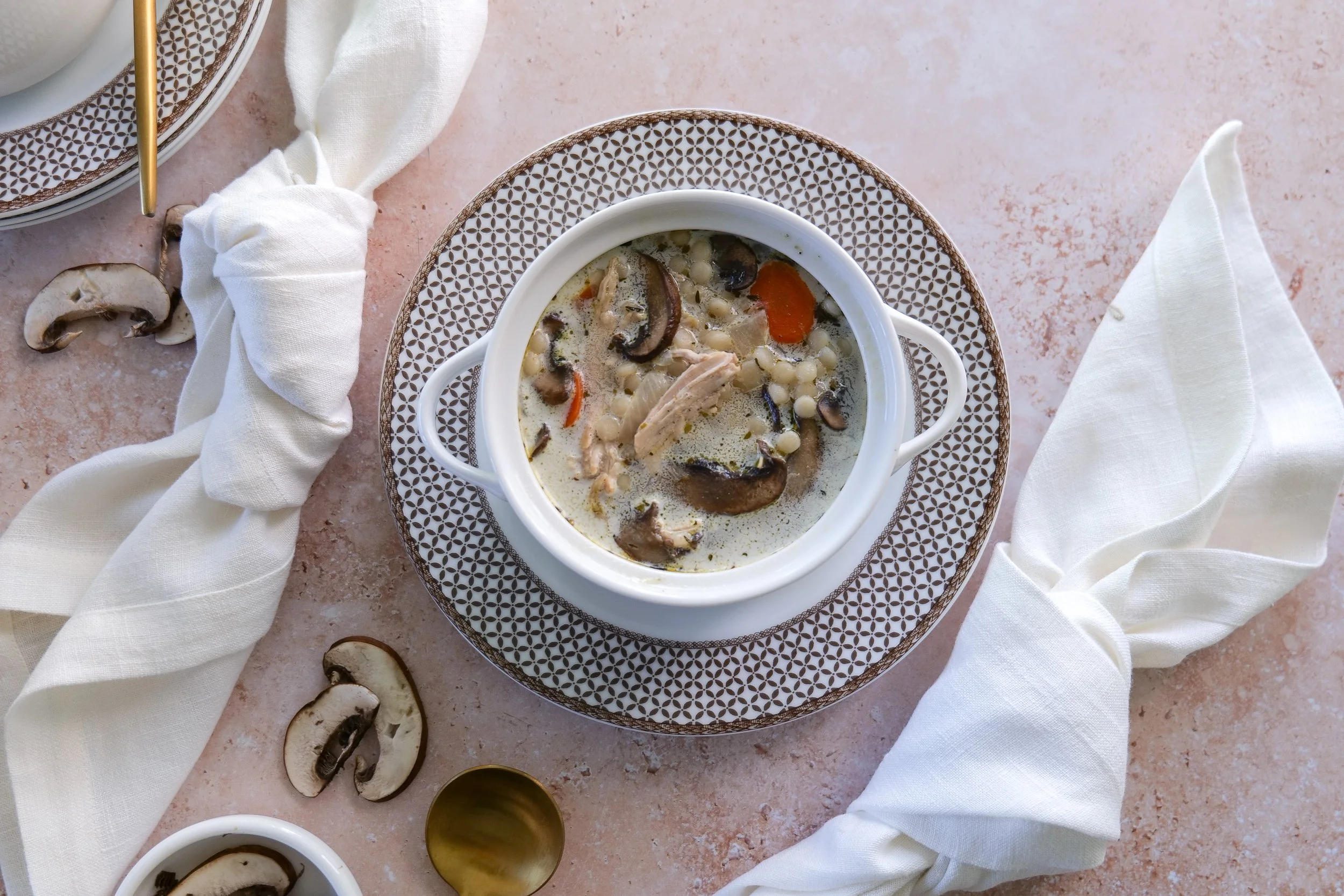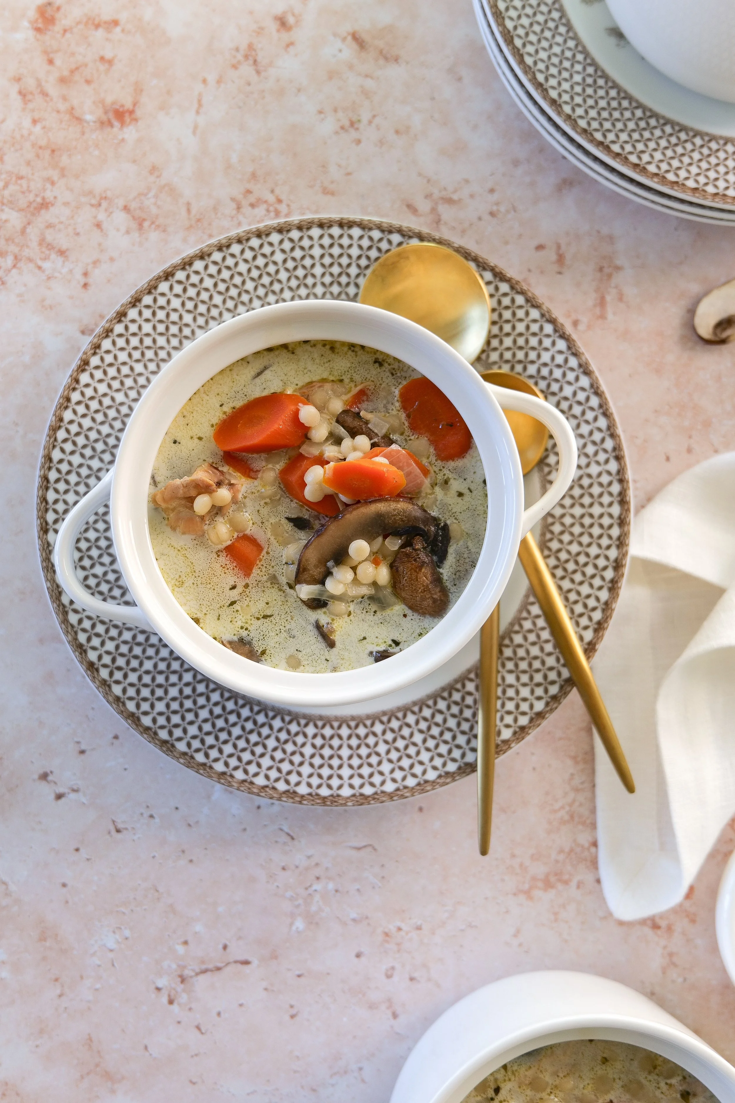 Made with the help of a slow cooker, this dish simplifies your kitchen hours while delivering an indulgent, comfort dish. The creamy broth has a rich, velvety texture that perfectly balances with tender chunks of chicken and the savory taste of mushrooms. The addition of couscous delivers a unique heartiness that elevates the soup to a satisfying meal for any occasion.