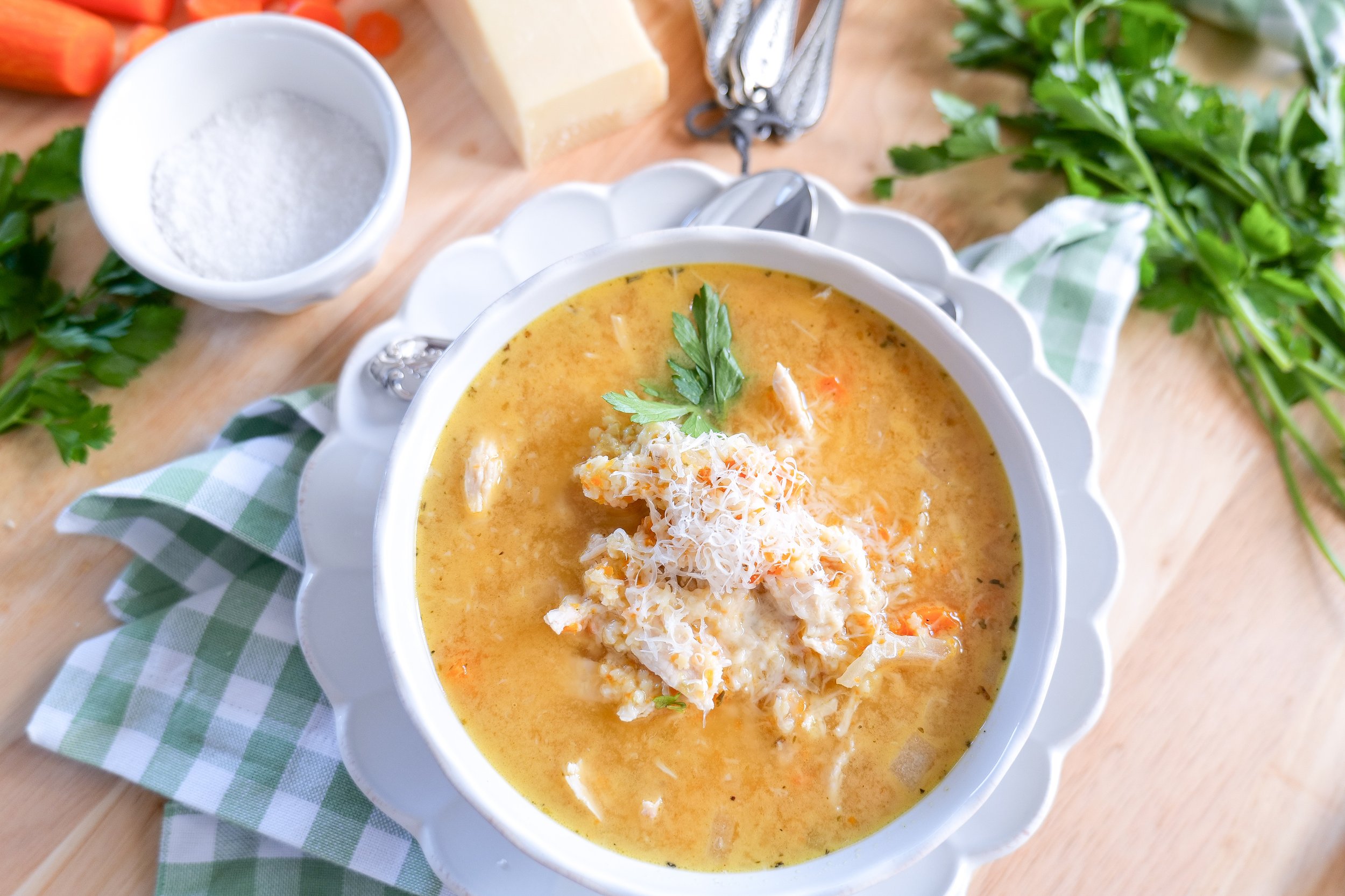 Known for its soothing effects, this soup is a flavorful blend that nicely blends tender chicken pieces, pastina pasta, and a bunch of nourishing vegetables into a warm pot of delight. With the essence of Italian home cooking, this dish serves as a heartwarming gesture of love and care crafted through generations of culinary wisdom that is perfect for make-ahead meals. The key to its magic lies in the rich, savory broth infused with classic Italian herbs and spices, which not only amplify the flavor but also contribute to its healthy and supportive benefits. Making it a great soup to have ready after having a baby.