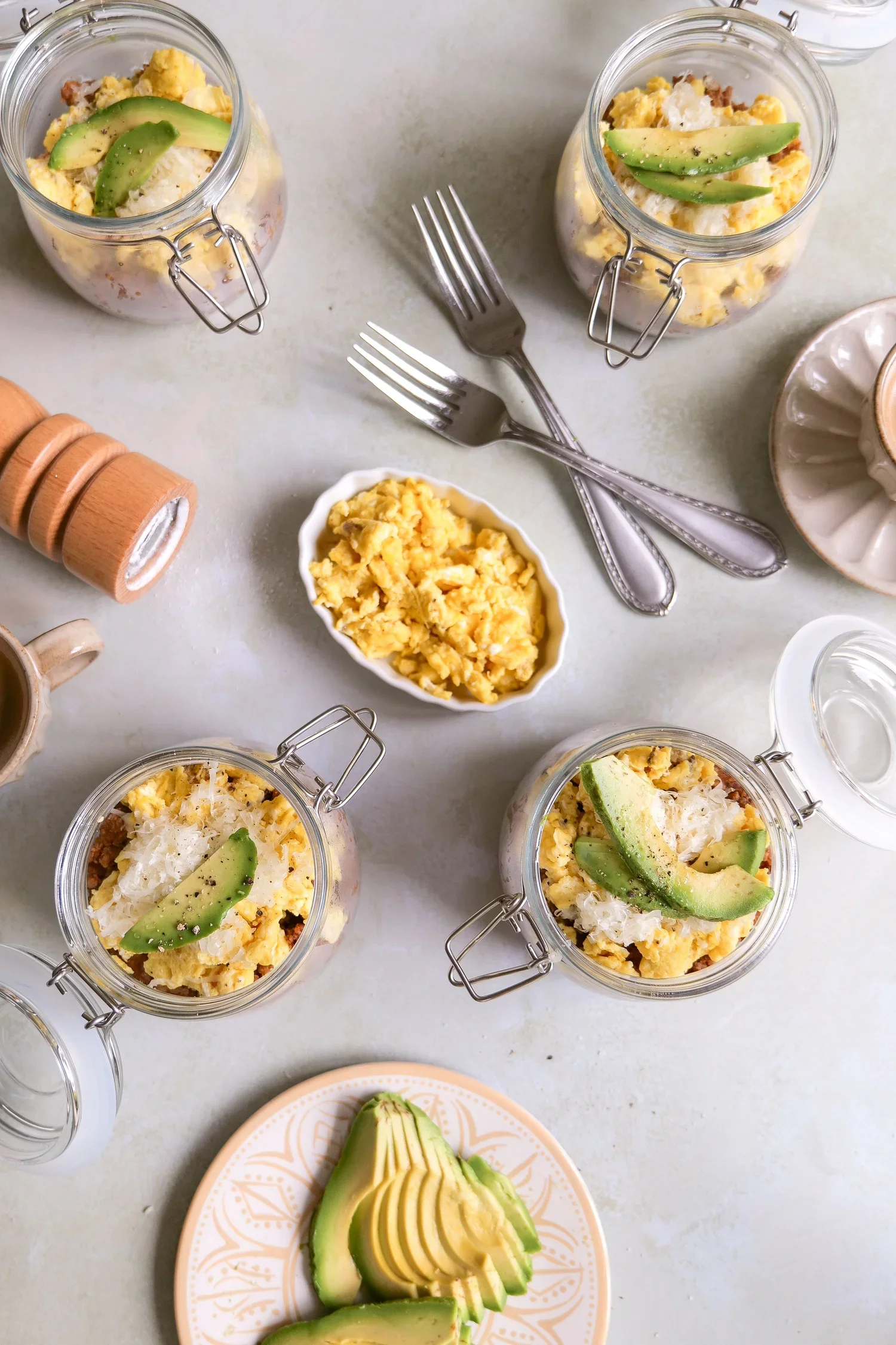 Nothing beats a hearty breakfast to kickstart your day, and these chorizo, egg, and potato breakfast bowls are the ultimate choice for a delicious and satisfying meal. With their comforting flavors and textures, these breakfast bowls combine the spiciness of chorizo, the fluffiness of eggs, and the crunch of potatoes. Whether you are big breakfast people like us, or someone looking for a quick and nutritious start to the day, these breakfast bowls are bound to brighten your morning. When freezing these I like to put each bowl in its own container, preferably glass so that I can pop it into the oven to quickly reheat and also give it a crispness that the microwave wont.