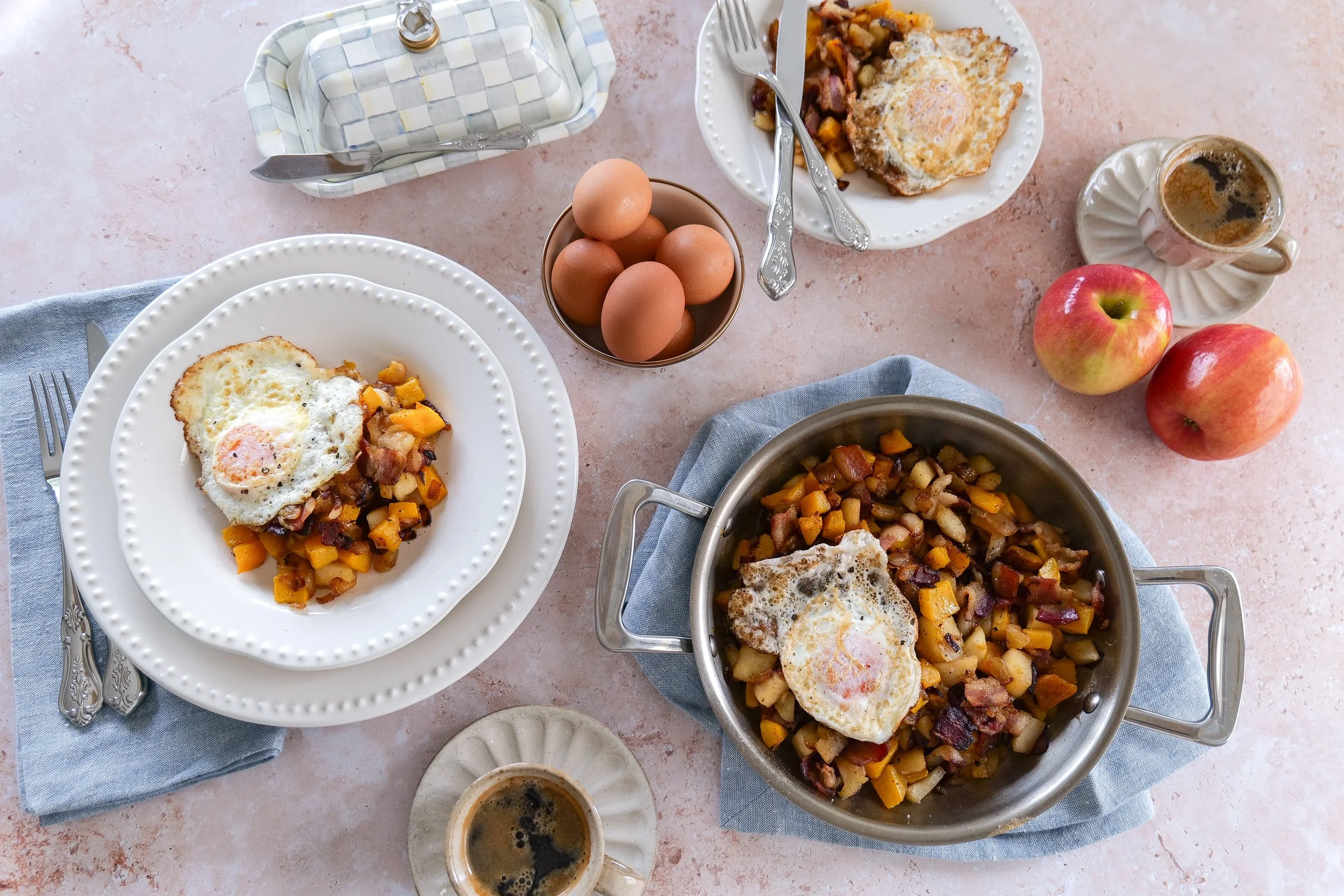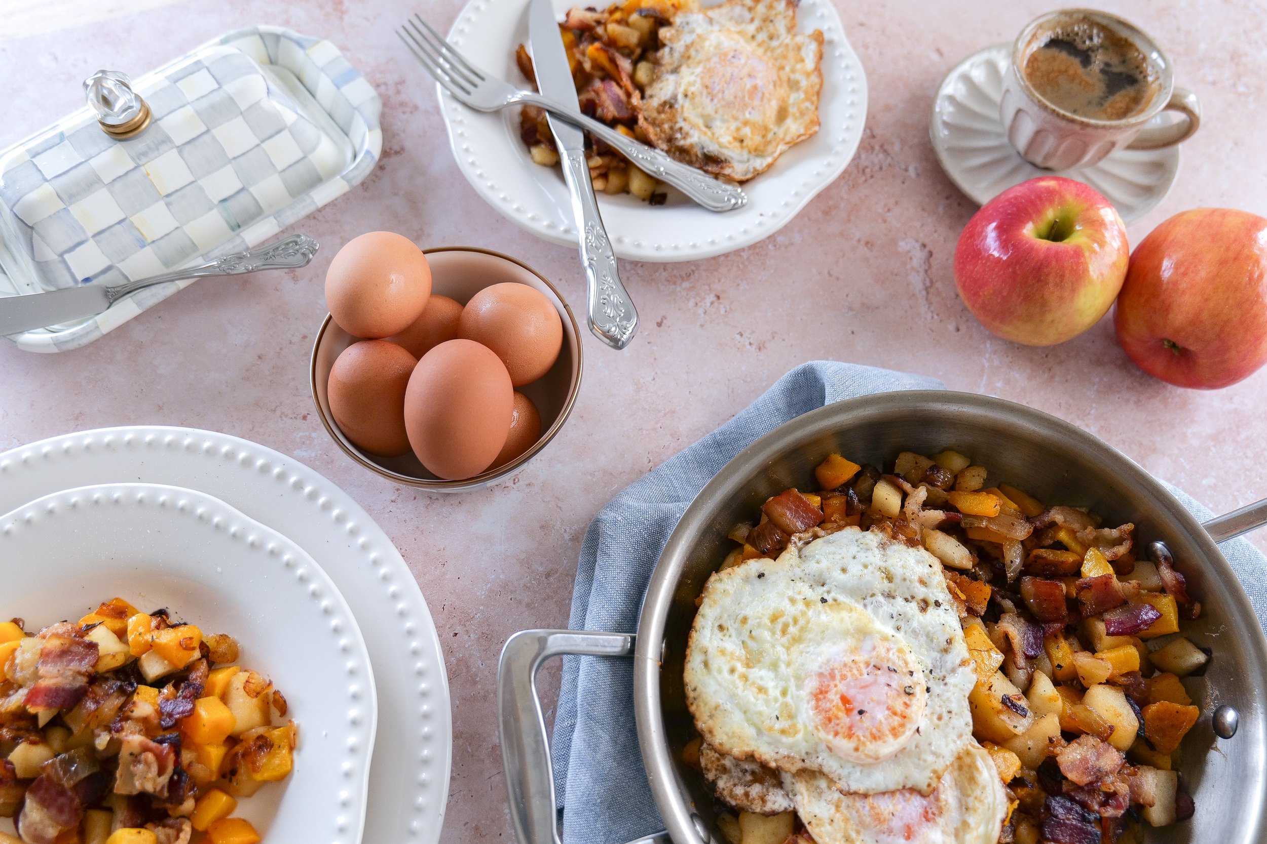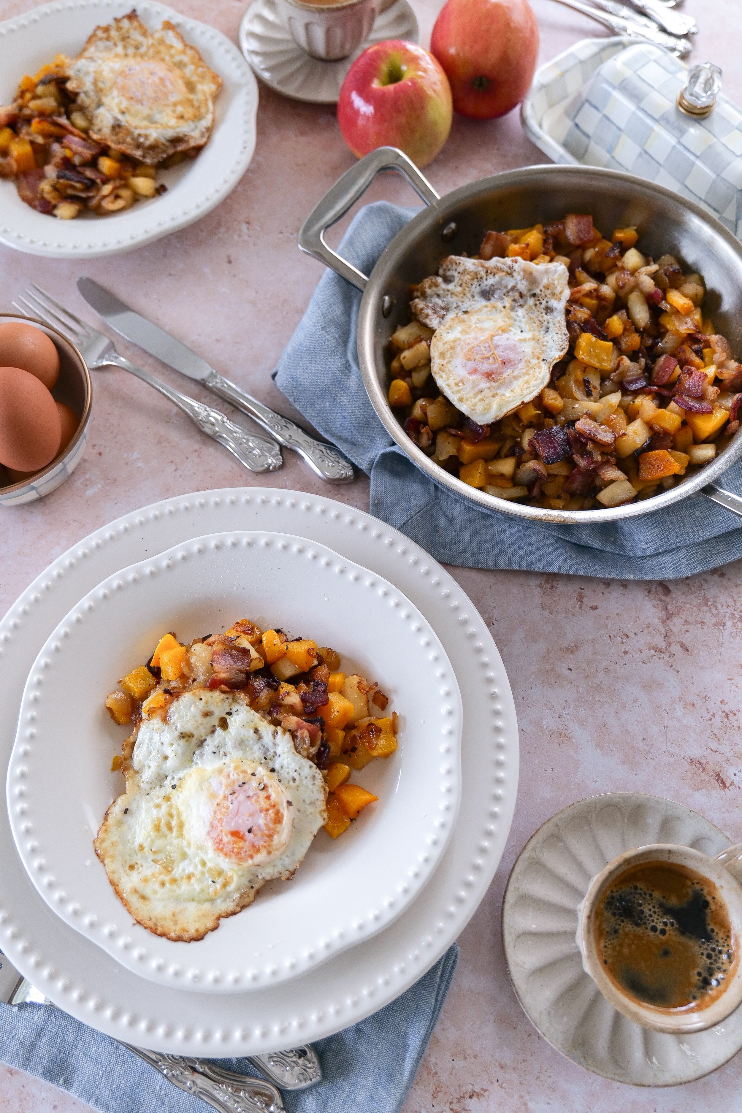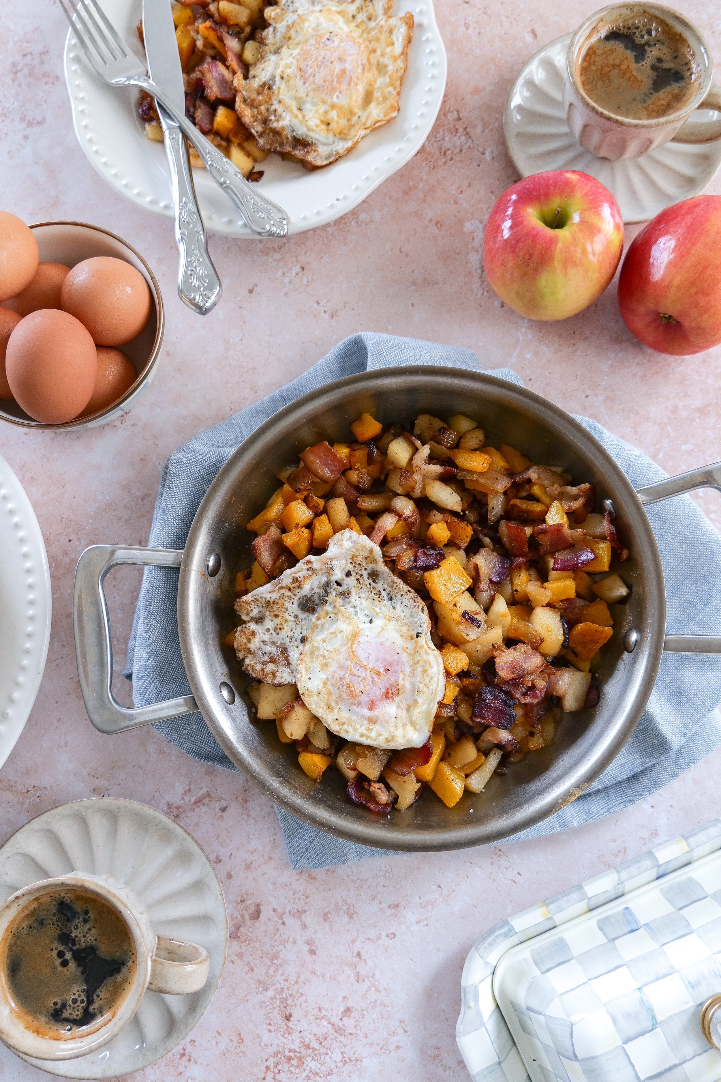 Savor the Morning with a Butternut Squash Breakfast Hash with Apples, Bacon, and Eggs