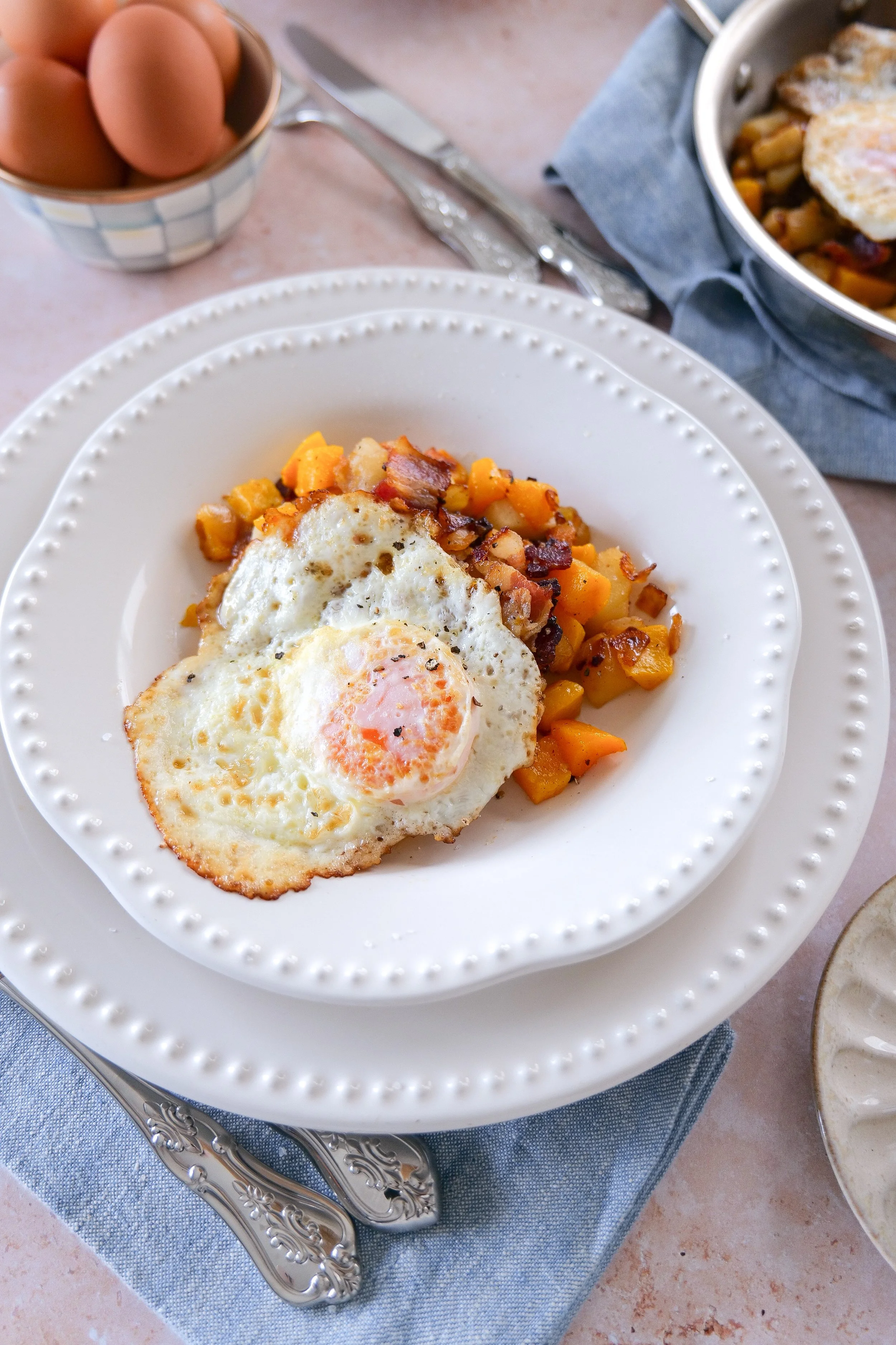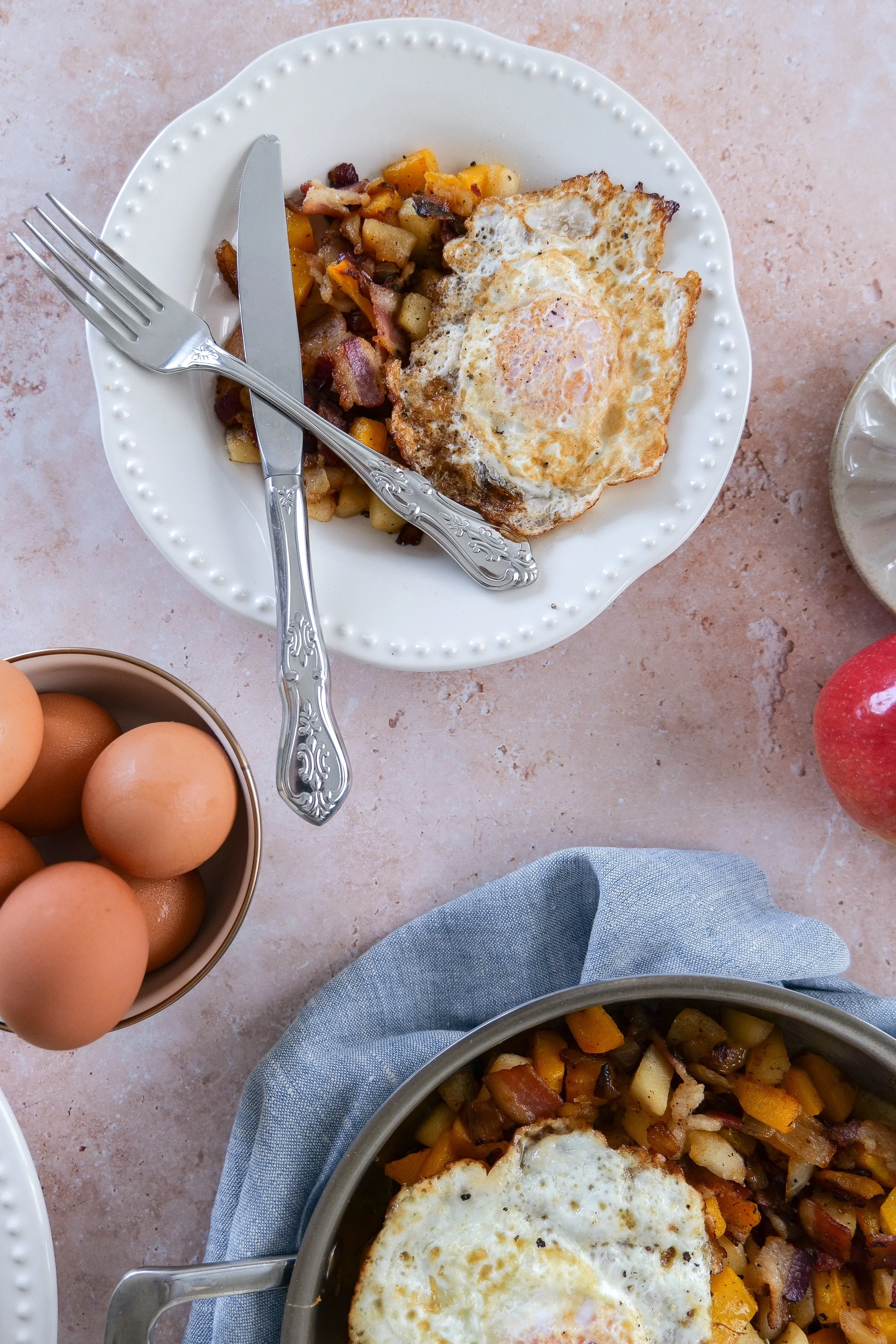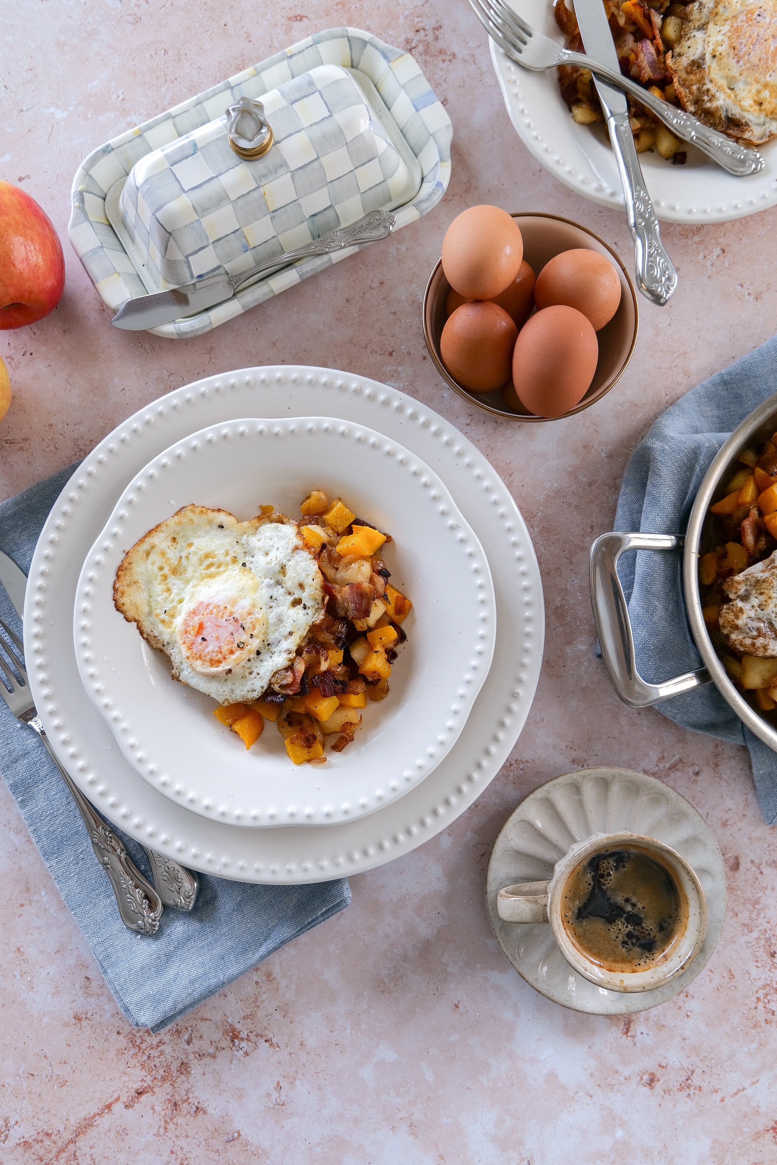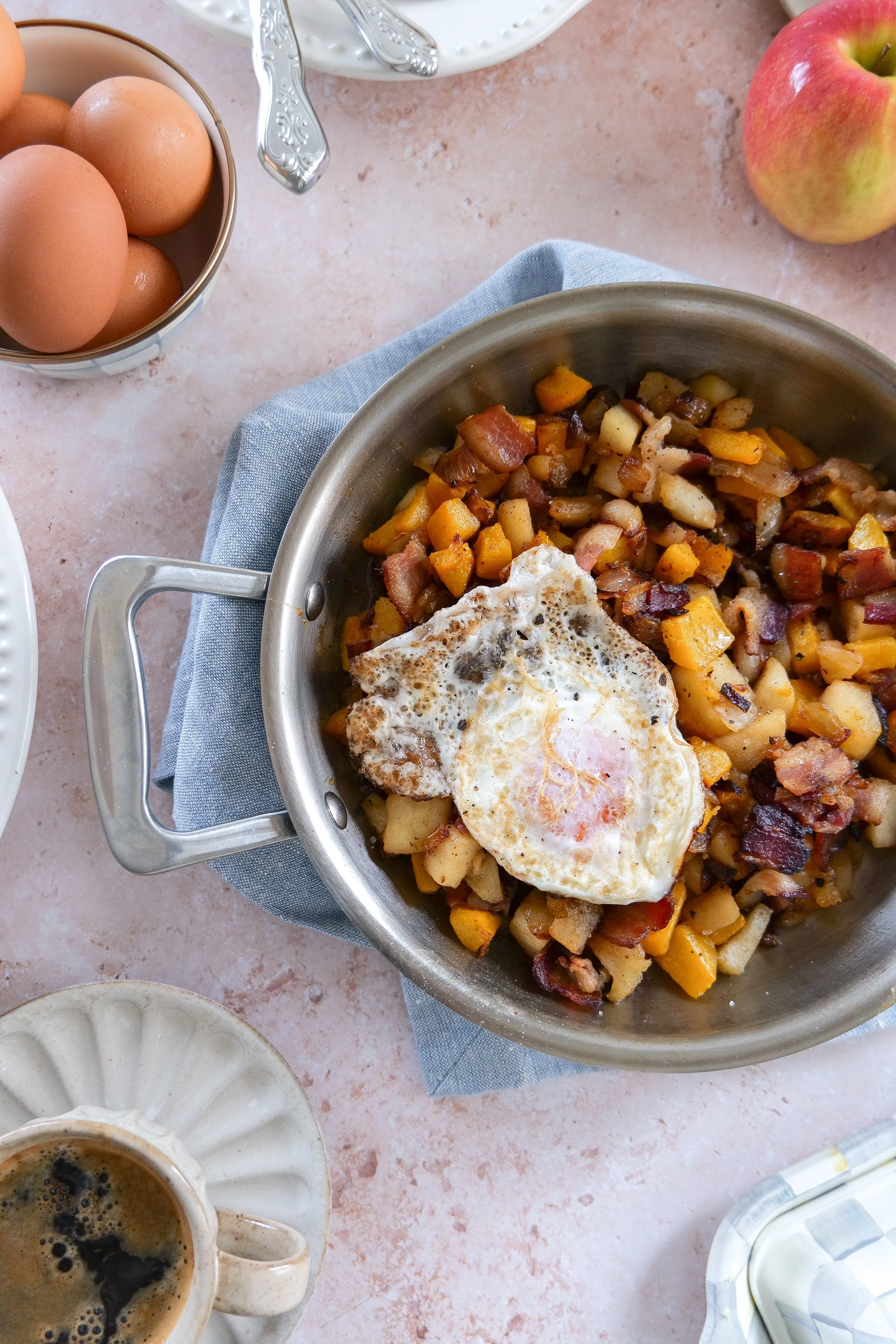 Savor the Morning with a Butternut Squash Breakfast Hash with Apples, Bacon, and Eggs