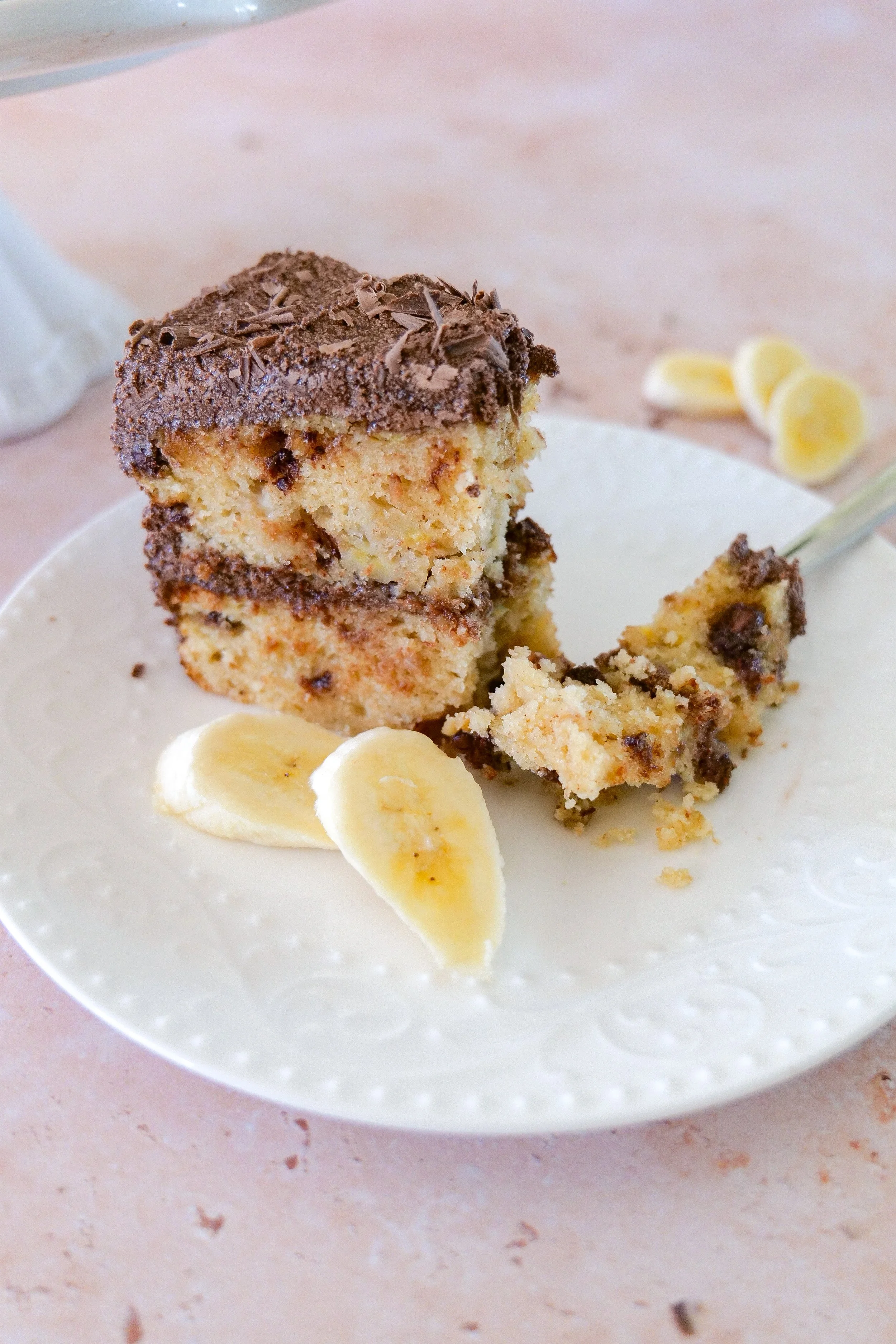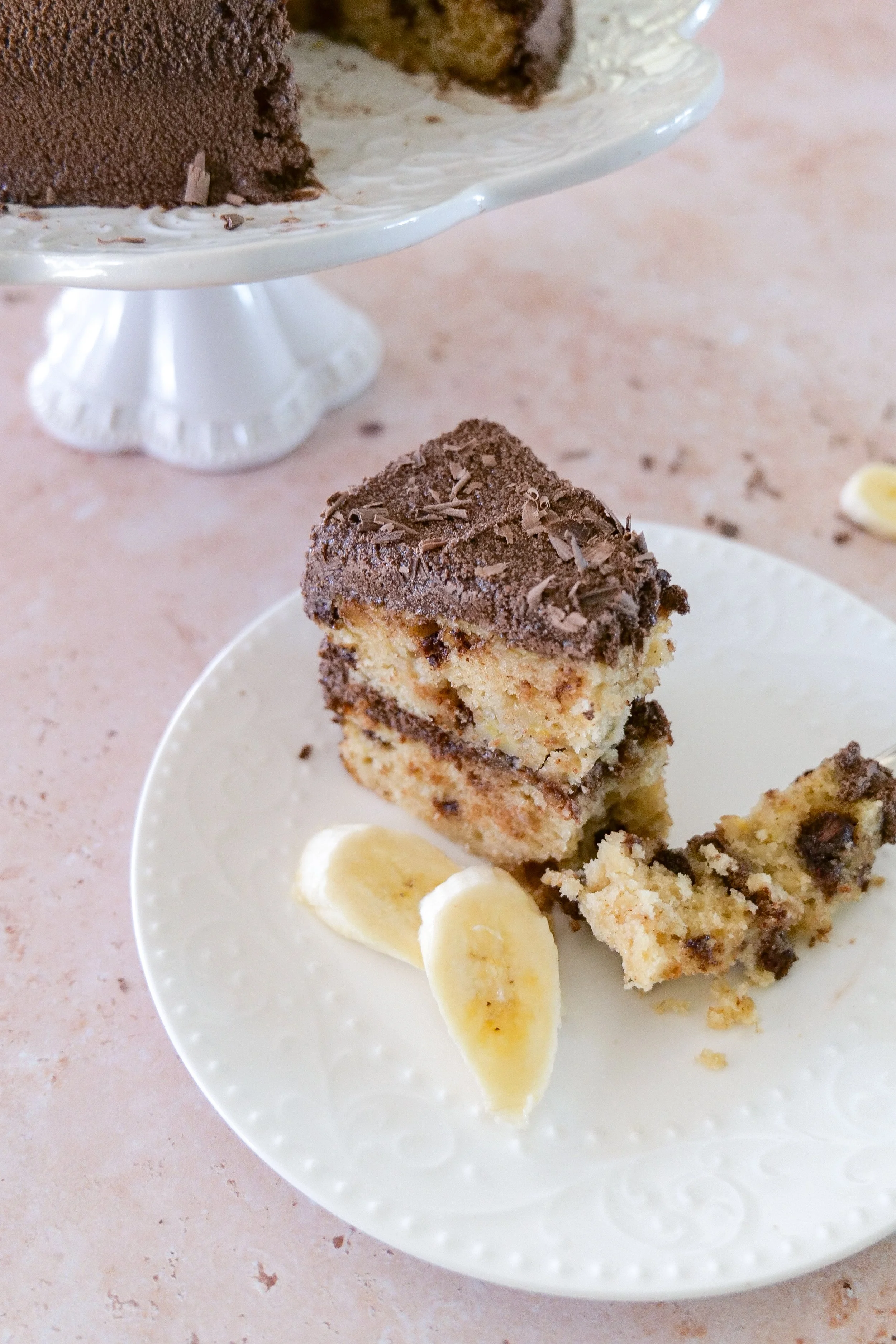The Ultimate Comfort Dessert: Banana Chocolate Chip Cake & Ganache Frosting!