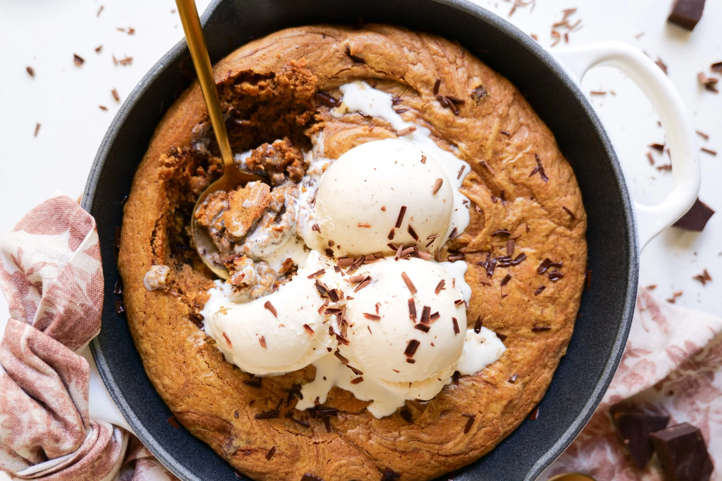 /If you’re looking for a dessert that not only sings with autumn flavors but also provides a deeply satisfying, warm experience, then look no further than the brown butter pumpkin chocolate chip oatmeal pazooki. This cookie treat combines the unbeatable flavors of nutty brown butter, pumpkin, hearty oats, and sweet chocolate chips. The pazooki is a what I'd call a hybrid dessert, as it's a yummy cross between a cookie and a pizza, usually baked in a skillet and topped with ice cream. This treat is an indulgent, gooey delight that makes the perfect dessert anytime of the year. Get ready to fall in love with this fall take on a classic comfort dessert.