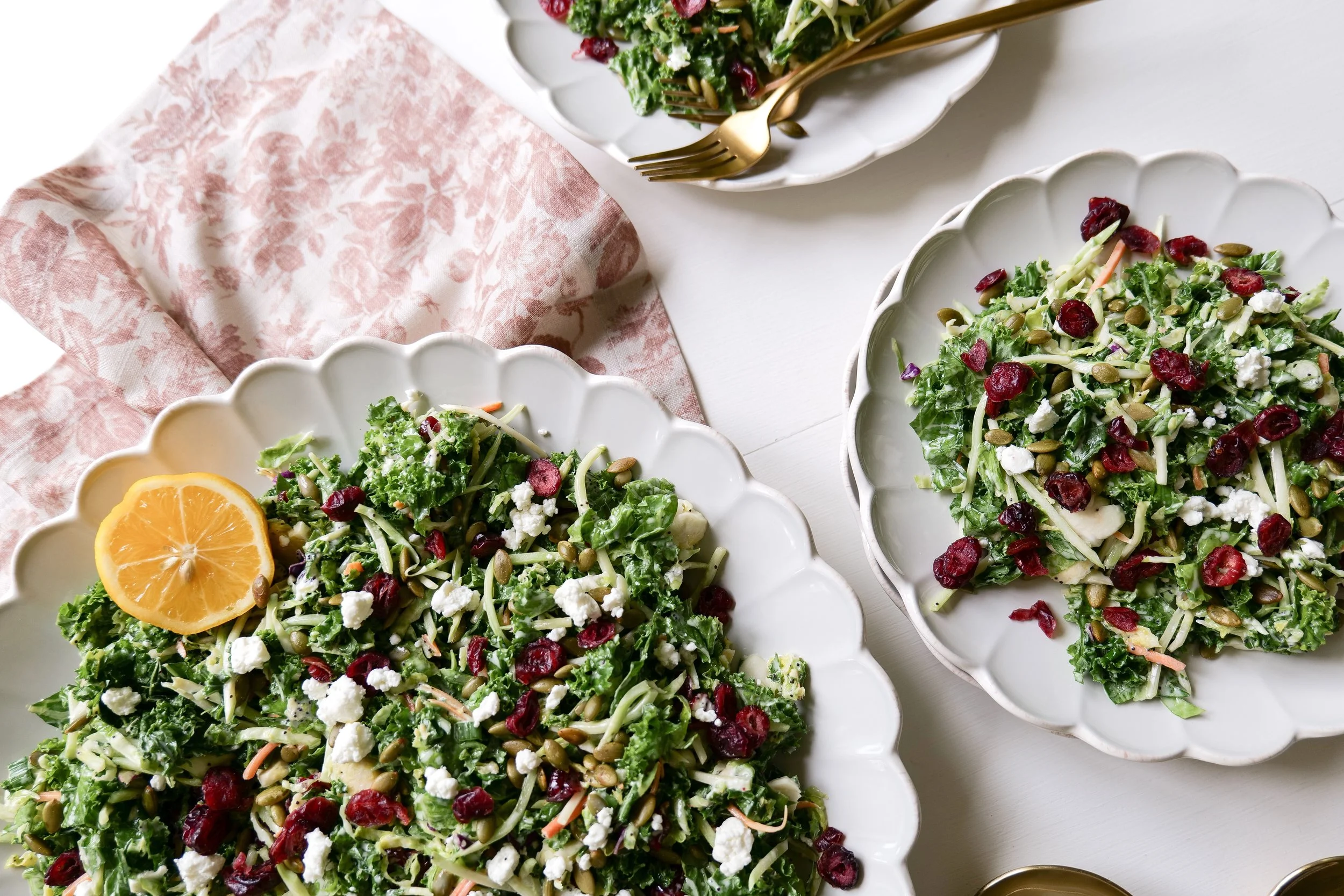 Shaved Brussel Sprout Salad with Apples, Goat Cheese & Candied Pecans